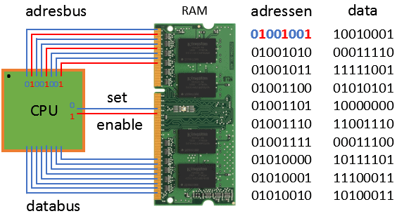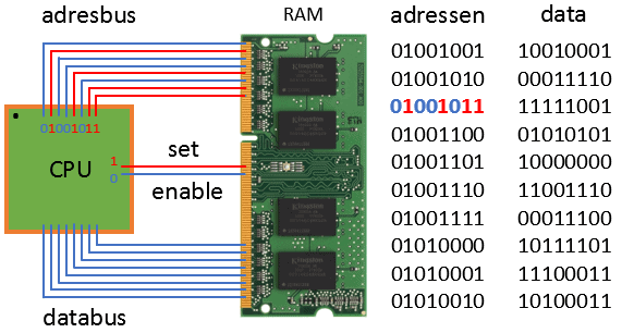 The CPU wants to store data in RAM memory: