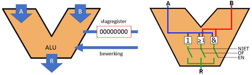 - 1 output: flag register