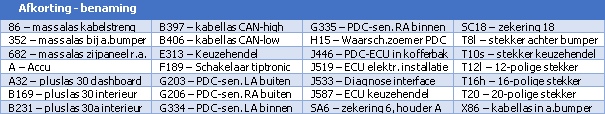 The PDC control unit (J446) receives the driving speed and reverse signal via the CAN-bus. Through connection T12/11, the PDC control unit sends a modulated block voltage to the wiring harness (X86 in the rear bumper) that connects to all PDC sensors (G203, G334, G335, and G206). Each PDC sensor has its own signal wire (via pin 2) to the ECU. Furthermore, the ground of each sensor is connected to a ground connection (352).