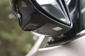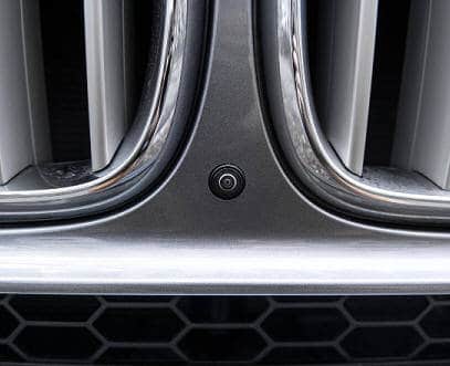 When parked backward between two vehicles or large objects, you need to drive slightly forward to look left and right. With a side view camera (also called corner view), this becomes much easier; cameras on the left and right in the front bumper send the image to the display in the dashboard. The image shows the view from the corner cameras. Cameras unfortunately cannot be mounted invisibly. Cars equipped with a side view camera typically have a (usually) black lens in the bumper. The image below shows the front bumper of a BMW with the left camera.