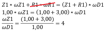 In automotive technology, this never happens, as it would always be slightly above or below 4, otherwise, the gears would always hit each other on the same surfaces (extra wear). But here it’s easier to calculate as an example. Also, you now see that the omegas are known!