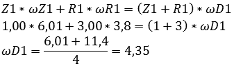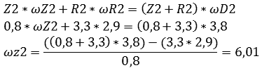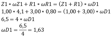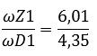The reduction that the second system performs is 5.1. This is not the reduction between the engine and wheels but between the engine and system 1. We will now calculate the gear ratio of system 1 with the data from system 2, because the omegas are now known: