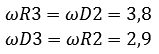 Then we move to system 2. The omegas known in system 3 are filled in in the calculation of system 2: