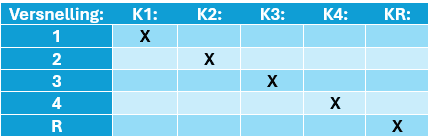 As explained, clutch K1 is engaged when shifting into first gear. When shifting to second gear, clutch K1 will be disengaged and another clutch will be engaged. This is shown in the table.