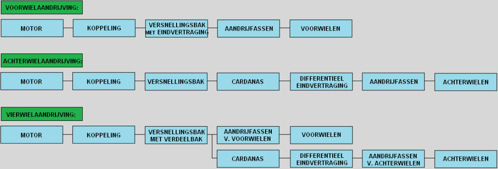 Front-wheel or rear-wheel drive indicates which wheels transmit the engine’s driving forces. Most car manufacturers choose front-wheel drive. The engine provides the driving forces. In a manual transmission vehicle, the transmission is operated with the clutch, whereas in an automatic transmission vehicle, this occurs within the transmission itself. The power eventually reaches the wheels through the drive shafts.