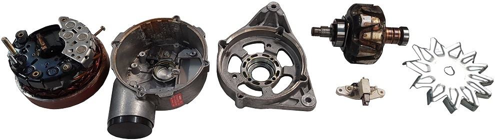 We had less luck with the alternator. After connecting the positive wires, a short circuit was discovered when connecting the ground wire. After a brief search, the cause was found: the B+ terminal of the alternator was in contact with the casing. The resistance between the B+ and the housing was 0.2 ohms. The alternator was immediately disassembled and opened. What was found? The D+ terminal was contacting the casing because the internal components were not seated straight in the housing, and the plastic bush was broken. The alternator could never function this way; presumably, a student disassembled and incorrectly reassembled the alternator years ago when the engine was no longer running.