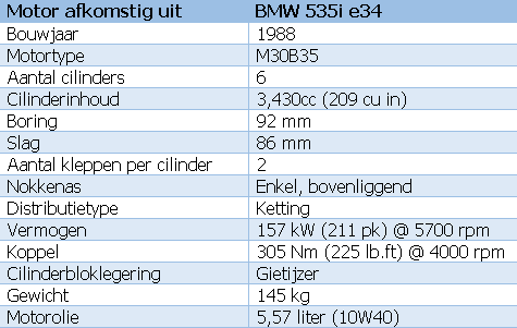 The decision to use this BMW engine for the conversion project was made quickly; it was too defective for students to work on, but still good enough to refurbish. The engine is from a BMW 5-series E34. The table below shows the engine’s specifications.