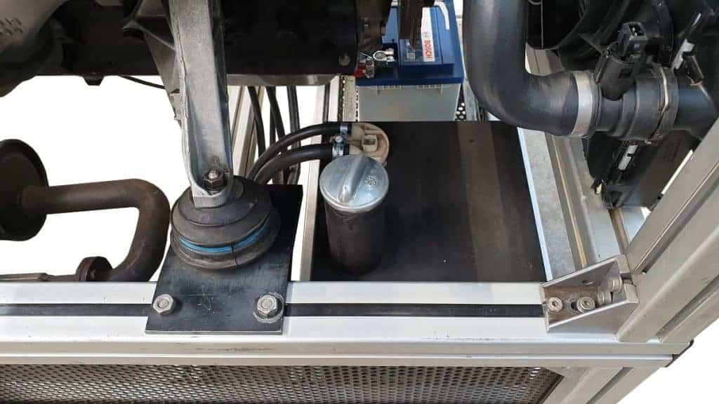 - Rubber blocks are placed between the radiator and the horizontal bar of the motor frame for support;