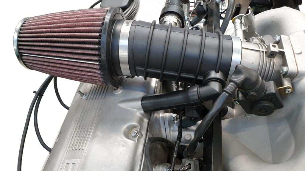 Using AutoCAD and a 3D printer, an adapter was designed and printed to fit between the air filter and the intake pipe.