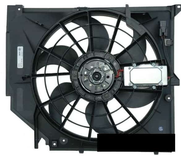 These components are not from an E34 but an E46 (3-series). The size of the radiator, the diameter of the coolant hoses, and the capacity of the cooling fan are sufficient to ensure proper cooling. The cooling fan has a capacity of no less than 390 W.