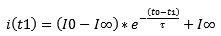 The following formula shows the general solution to the first-order differential equation, calculating current strengths, charge, and discharge times to display the switching phenomenon using a curve.