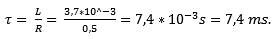 The coil according to formula 14 is charged to 17.7 A at t = 7.4 ms. Actual charging time is shorter since the coil maxes at 7.5 A. Required time can be calculated using known data in formula 15.