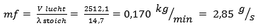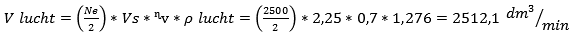 The first step is to determine the fuel injected at the torque speed. A certain amount of air is drawn in per two crankshaft revolutions. At torque speed, volumetric efficiency is highest. Due to the engine’s properties (including valve overlap), the engine fills best at this speed, and efficiency is highest. Volumetric efficiency is estimated at around 70%. Formula 4 calculates the air volume present in the engine at that moment.