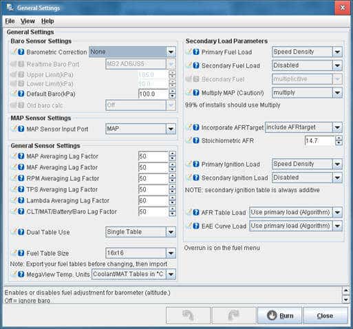 Engine settings in TunerStudio: