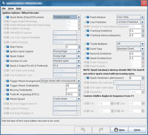 The MegaSquirt is delivered as a kit. The composition of the MegaSquirt depends on the engine configuration and the sensors and actuators used. Not all components can withstand high current levels. When choosing the ignition driver, it is also important to consider the type of coil being used. A choice must be made from three different options when assembling the MegaSquirt. In many cases, multiple circuits can be mounted, but the correct circuit is activated by means of jumpers.