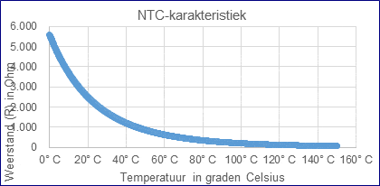 In the classic setup, no temperature sensors are present on the engine block. The engine is equipped with a bimetal that lights up the dashboard lamp in case of high coolant temperature. However, since the engine management system does take into account the temperature of the coolant and intake air, it was decided to install NTC resistors afterward. An NTC resistor has a negative temperature coefficient. This means that the resistance value decreases as the temperature increases. A sensor with a resistance value of 2.5 kilo-ohms at 25°C was chosen as the coolant temperature sensor. The resistance change is greatest in the most critical temperature range. The properties of the NTC resistor must be mapped to calculate an accurate temperature.