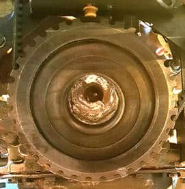 It is common to use a 36-1 or a 60-2 trigger wheel. The trigger wheel with 60 teeth is mainly used for larger diameters. The 36-1 is suitable for use due to the tooth width. It is crucial that the trigger wheel has minimal runout. A runout means a change in the magnetic field between the sensor and the teeth of the trigger wheel, which can adversely affect engine operation. This must obviously be avoided. Therefore, modifying the existing crank pulley was preferred. The outer edge of the existing crank pulley has been machined on a milling machine. By removing material, notches have been created. The remaining 36 teeth are used to allow the sensor to measure changes in the magnetic fields. A tooth was ground off for the reference point. The image below shows the modified crank pulley.