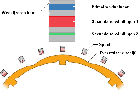 As the cam of the eccentric plate moves along the coil, the induction in the secondary windings is enhanced. Due to the number of windings in the secondary 1 and 2 windings in each coil, this also results in different voltages in the secondary windings. The ECU in the inverter can calculate the rotor’s position based on the voltages of the secondary windings 1 and 2.