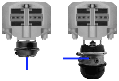 - right: diaphragm cylinder with the spring brake cylinder of the rear axle mounted underneath.