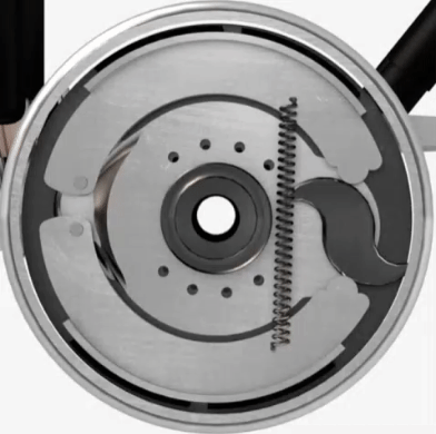 The animations below show the outward stroke of the diaphragm cylinder that operates the lever, and an S-cam that, when rotated, presses the brake shoes against the brake drum. Note: both animations do not run in sync. In reality, during the outward stroke of the diaphragm cylinder, the S-cam will move the brake linings against the drum.