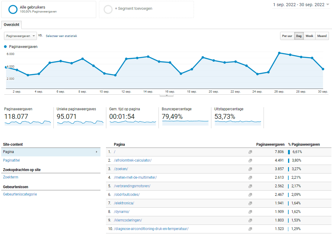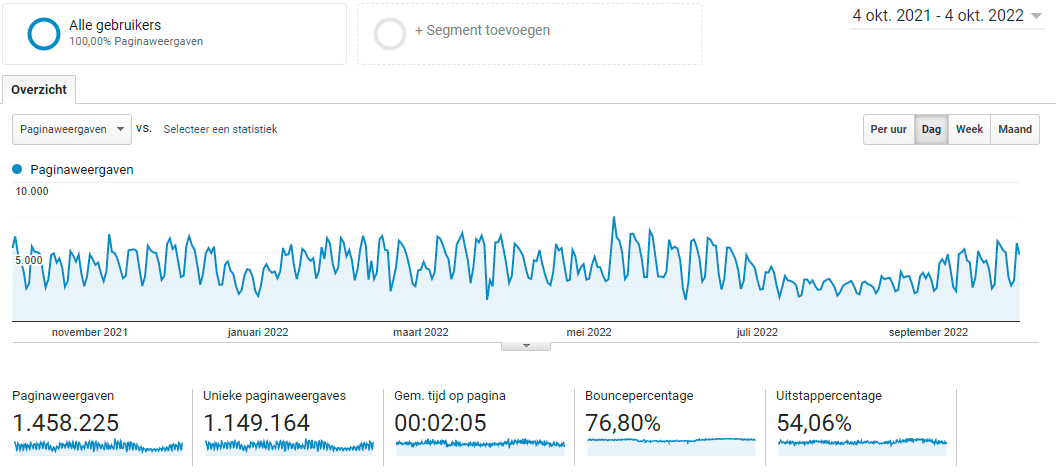 Update: Due to issues following changes within Google Analytics (UA to GA4) and a possible future ban (source: Tweakers), I deactivated Google Analytics on July 1, 2023. Statistics are now exclusively tracked by the server software (AWstats). I will share more about this later.