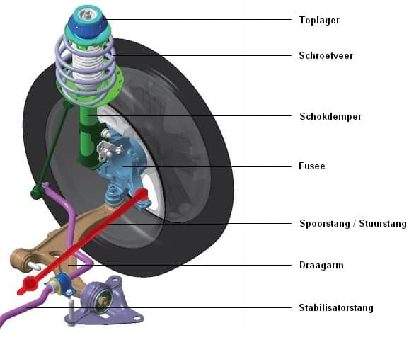 The main advantage of the McPherson strut is that the spring and shock absorber are combined. This saves a lot of space and is also easy to design when designing the car. As a result, production costs are low.