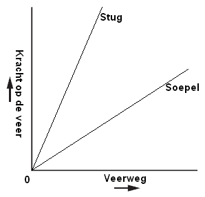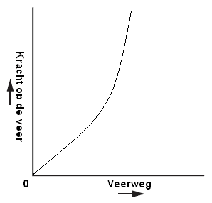 Below is the graph of a progressive spring. At first, with increasing force on the spring, the spring travel also increases. The line is not perfectly straight, but slopes upward. This means that if the force on the spring continues to increase, the spring travel becomes less. The car will therefore compress less with increasing force on the spring.