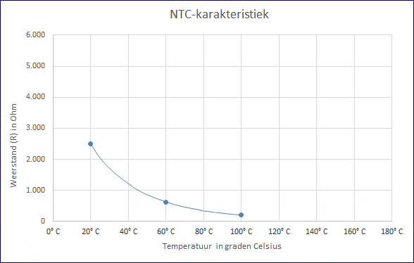 The NTC characteristic can be partly sketched by determining the corresponding resistance value at three temperatures. For this, the temperature sensor can be measured with an ohmmeter while it is hanging in a heated kettle.