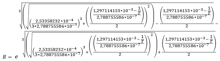 Filling in these coefficients and ln (R) gives the correct temperature. When the above formulas are filled in, this gives: