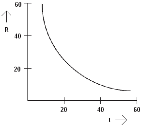 The relationship between resistance and temperature in an NTC resistor is not linear. That means the resistance does not decrease proportionally with temperature increase. This is visible in the curved line in the figure. This line is called a “characteristic” and is logarithmic.