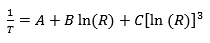 Next, the Steinhart-Hart coefficients (A, B, and C) can be calculated: