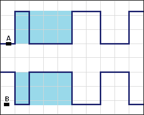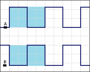 - Potentiometers with sliders oriented upwards: both signals run parallel to each other but at different voltage levels;