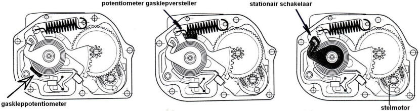 The engine management systems used today employ a throttle position regulation. An actuator on the throttle valve allows its position to be changed. This can be for cruise control or idle control. Potentiometers measure the position of the throttle valve. The engine control unit (ECU) receives the readings from the potentiometers and can control the actuators to open or close the throttle more.
