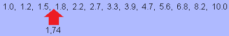 There are no standard resistors that are exactly 1.74k (Kilo-Ohm). So a standard resistor with a different value must be chosen. The choice must be made from the available resistors in the E12 series.