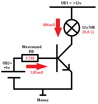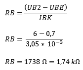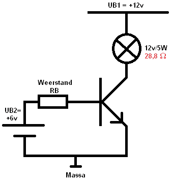 A circuit must always be executed with a certain resistance (in the above schema RB). If this resistance was not present, the transistor would be damaged immediately. The value that the resistance RB must have depends on all factors; namely, voltages on both UB1 and UB2 and the required current for the components (resistors or lamps), etc. We will now calculate the load resistance RB.