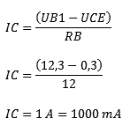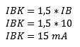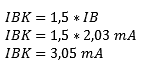 In every transistor circuit, a safety margin (IBK) of 1.5 x IB applies. So the value of IB must be multiplied by 1.5 again. The reason for this will be explained later.
