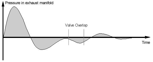 Because there is valve overlap—during the transition from the exhaust stroke to the intake stroke, both the intake and exhaust valves are open—temporary vacuums can occur in the cylinder. This pressure can be lower than atmospheric pressure. During valve overlap, the exhaust gases help draw fresh intake air into the combustion chamber and expel remaining exhaust gases. This phenomenon is also called scavenging. Because of this improved scavenging, the combustion chamber is filled with more fresh air and thus more oxygen. This increases the volumetric efficiency of the engine.