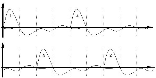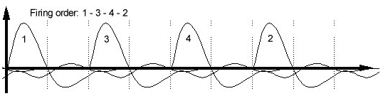 With a conventional turbo, the exhaust gases come into contact with each other in the exhaust manifold. We call this “interference”. The image below shows the pressure pulses that arise in the exhaust manifold from one cylinder.