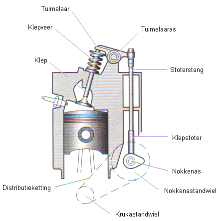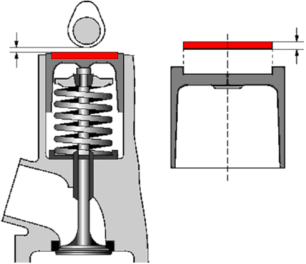 There must always be a certain amount of clearance between the camshaft and the rocker arm or the top of the valve. This clearance allows the material to expand. The clearance should not be too large; otherwise, the valve will open less far and for a shorter duration. If the clearance is too large, it takes longer for the camshaft to press the valve open and it will close sooner. The clearance must also not be too small; the valve will open earlier and close later. The valve then remains open too long each time. The time the valve remains closed is, therefore, shorter; there is a risk that the valve will not be able to dissipate its heat to the valve seat of the cylinder head and could overheat, causing the valve to burn.