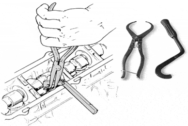 There is often special tool for easily replacing the shims. An example of this can be seen in the image.