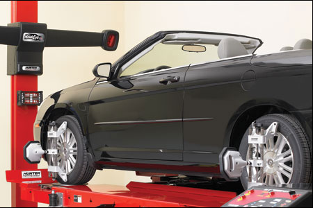 The car will then need to be aligned. The alignment is done on a special alignment bench, where a computer using sensors (mounted on the wheels) can precisely see the positions, allowing for exact adjustments. Every car brand and type has specific settings. Lowered cars also have different alignment values than similar cars with standard chassis.