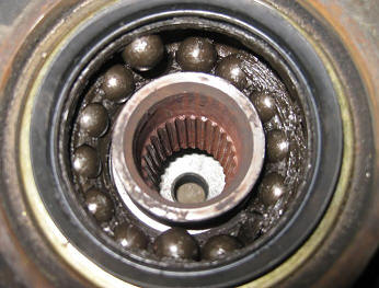 In the image below, the hub is pulled out of the bearing with a slide hammer.