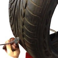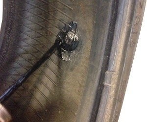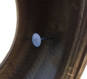 If the tire is flat due to a nail through the outermost piece of the tread, or if the tire is stabbed in the sidewall with, for example, a screwdriver, the tire cannot be repaired. The tire’s sidewall is very vulnerable due to much movement in this area. The tire compresses here, and when cornering, the sidewall also accommodates lateral movement of the tread (known as the slip angle).