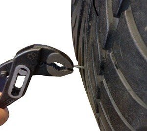 Cut off the end of the plug that protrudes from the outside of the tire as close to the tire as possible. Tug on the plug to ensure no piece sticks out after cutting.