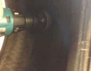 Insert the plug through the hole, but do not pull it all the way tight. Make sure the flat portion of the plug does not touch the tire’s interior.