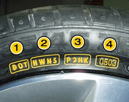 For tires produced before the year 2000, this comprises only three digits (the last digit stands for the year).