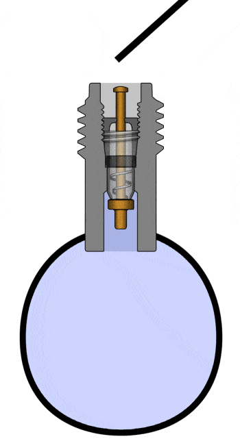 In the image, air escapes because the core is pressed by an object, against the valve spring’s force. The air inside the tire (e.g., 2 bar) is higher than the ambient air pressure (1 bar), so the tire’s air pressure can escape. When the tire pressure is higher than the ambient pressure, the air pushes against the underside of the core, sealing it off. The air cannot escape due to its own pressure.