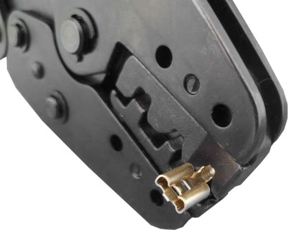 The crimping pliers have a mechanism that applies a large force to the cable terminal or metal connector plug with minimal force on the handle. Often, a holding mechanism is also included, so that the pliers “click” during crimping and hold the cable terminal when the handle is released. Only when the pliers are fully squeezed in the extreme position, or when the unlocking mechanism is operated, do the pliers release the cable terminal again.