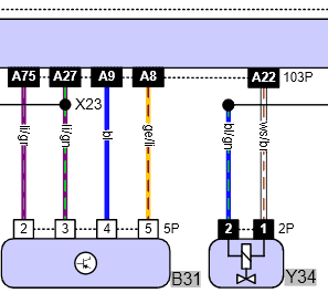 The following image shows part of a schematic of a Ford Fiesta. Here we see the component code B31 (mass air flow sensor) and Y34 (charcoal filter solenoid valve). The mass air flow sensor is a sensor, and the solenoid valve is an actuator. They are both connected to the engine control unit (at the top).